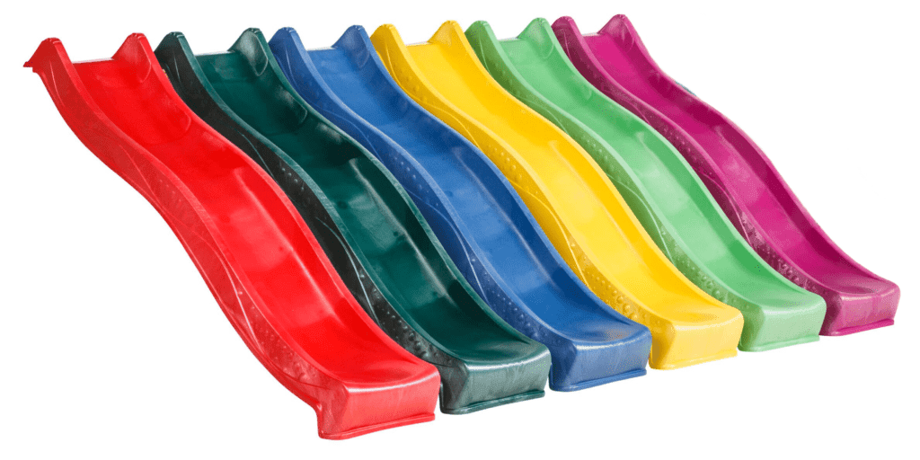 Zunanji tobogan za otroke v dveh dolžinah — 2,2 m za podeste do 125 cm in 2,9 m za podeste nad 125 cm. Tobogani so izdelani iz visokokakovostnega HDPE materiala, ki je odporen na UV žarke, dež in mraz. Na voljo v štirih barvah: rdeči, rumeni, zeleni in modri. Vsak tobogan vsebuje tudi pripravo za priklop na vrtno cev za poletno vodno zabavo.